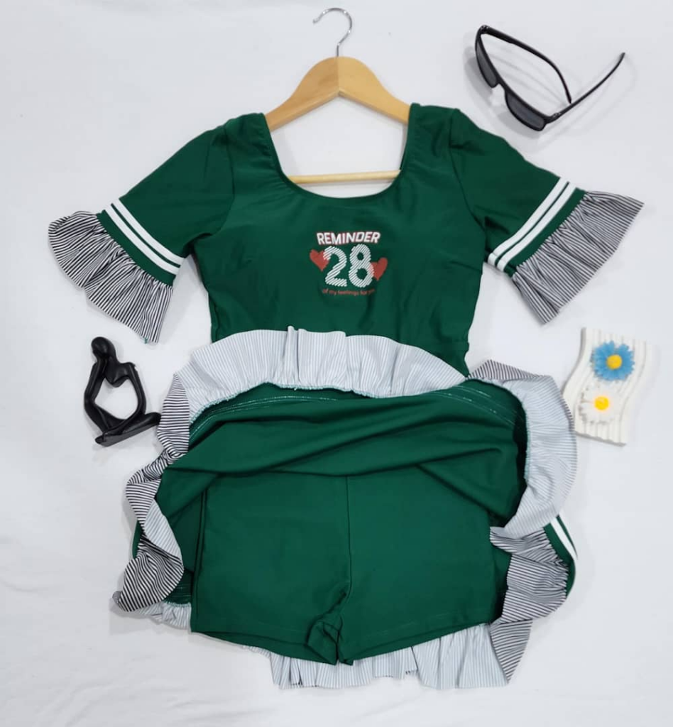 👙 مایو دامندار وارداتی با شورت پادار متصل و آستین سهربع